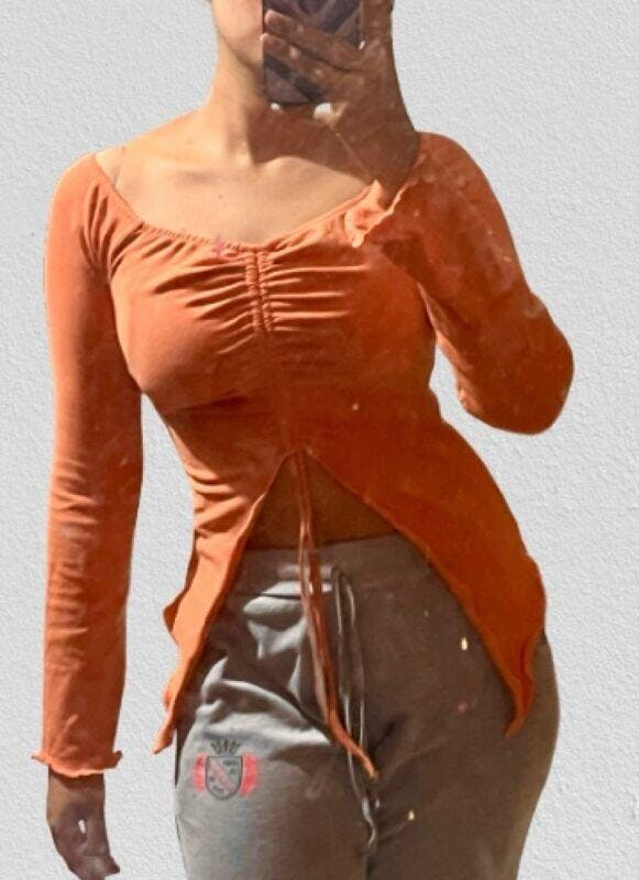 I am absolutely in love with this top . I am so obsessed with this colour and the fit is just so perfect. I bought it in size S and the material is soft and comfortable to wear. Without any second thought go for it.