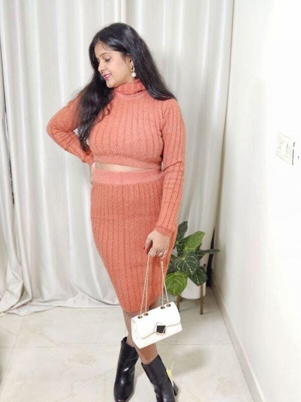 Priya A stylish co-ord set, though it looks a bit furry but it is not at all that warm you can wear it on a light weather and enjoy the style of the set. Very comfortable and gives you a very smart look.