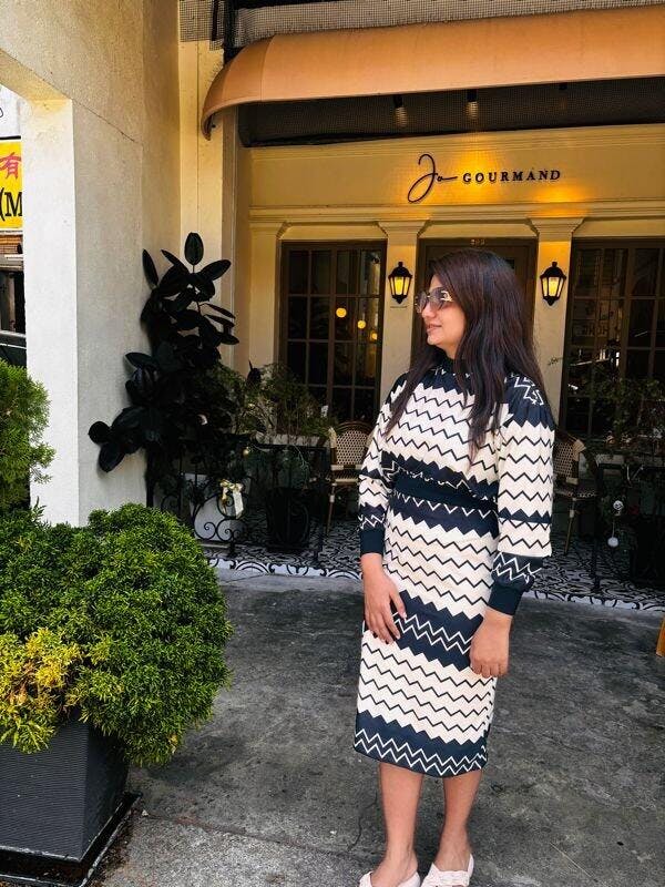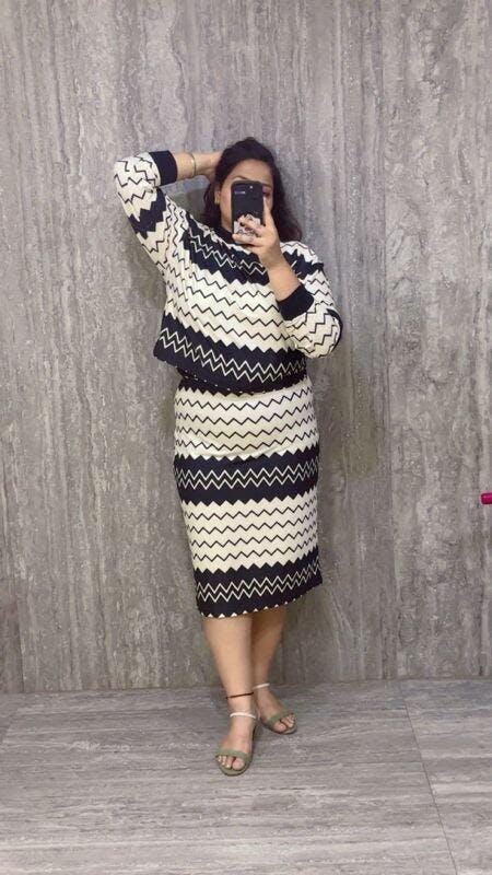 Okay so… I tried this look and honestly, I kinda love it! The zigzag pattern is giving such a bold yet neat vibe. It’s super comfy, like I didn’t expect it to be this soft and wearable. The co-ord set fits well, not too tight, not too loose — just right. And I actually like how it hugs the body without making me feel conscious.❤️