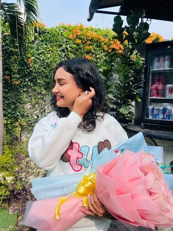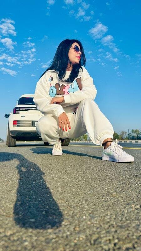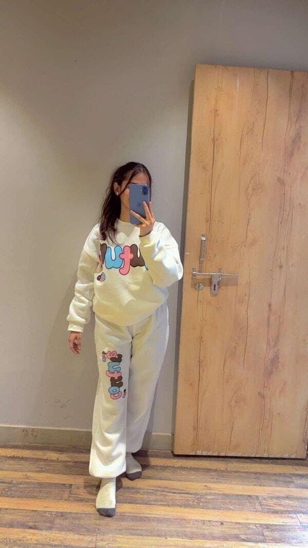 This white sweatshirt is not only super cute but also incredibly comfortable. The fabric is soft, warm, and perfect for casual outings or chilly evenings. The playful design adds a fun touch, making it stand out. It fits true to size and pairs well with jeans or joggers. Definitely a must-have if you’re looking for something stylish yet comfy!